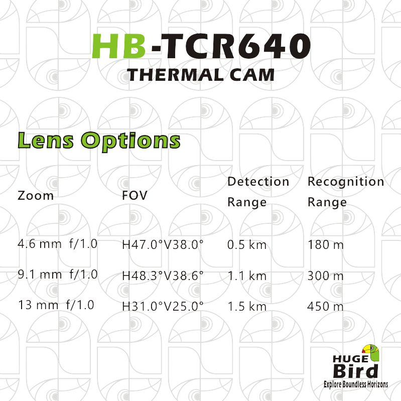 • Display: White Hot, Black Hot, Ironbow, Fusion